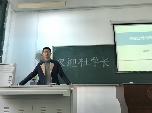 4月中旬,应《整合营销传播》任课老师林楠老师的邀请,yl23455永利2012届优秀毕业生杜溪回到母校,走进课堂为广告传播Q1441班的同学讲了一堂精彩的专业课——创业公司的整合营销传播。