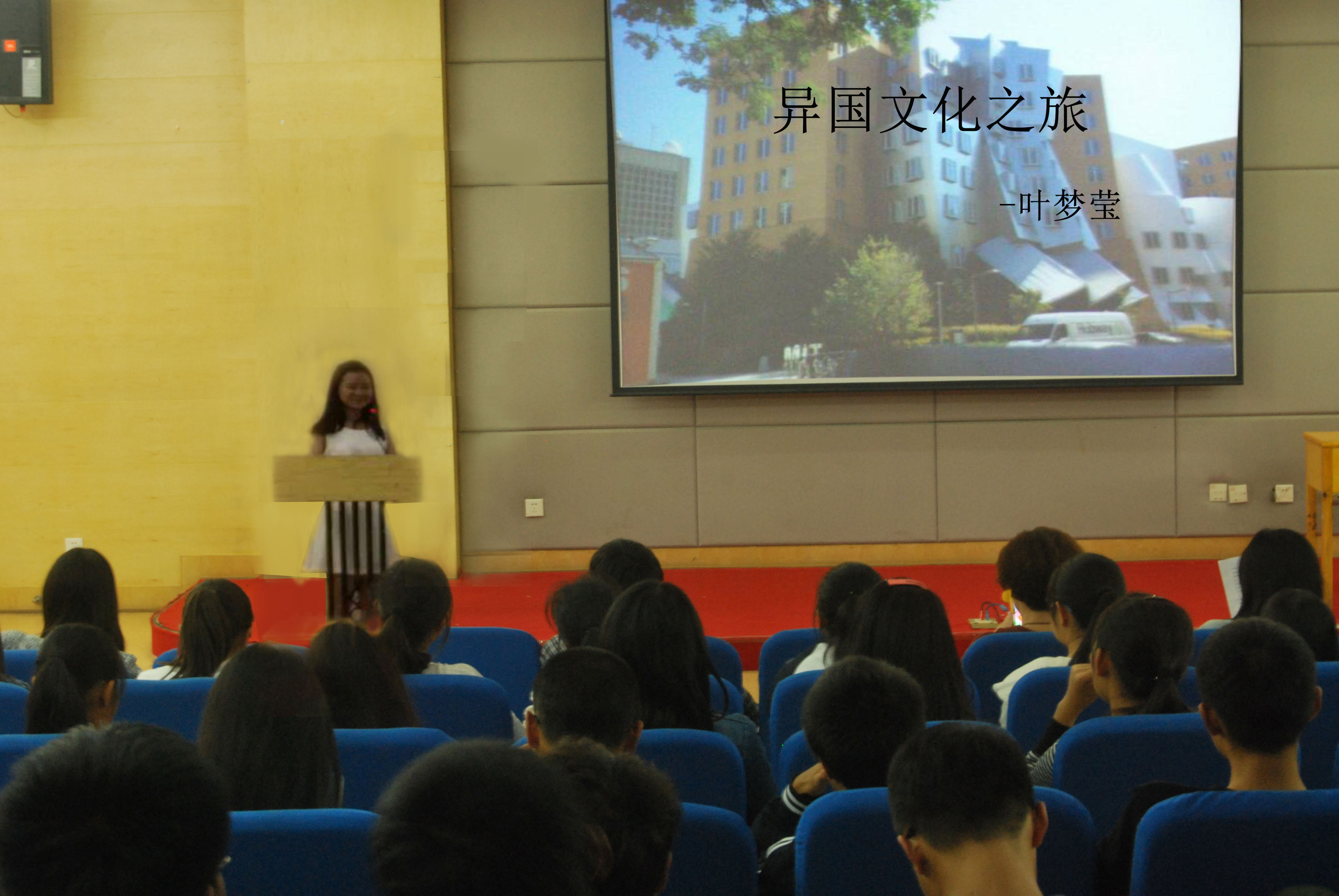 叶梦莹,大四传播班学生,今年暑假去美国进行了三个月的社会实践。她在交流会上与同学们分享了在美国的见闻和感受,主题是《抵达美帝的天空》。