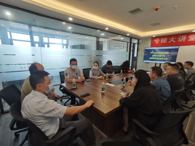 武汉兮棣产业园有限公司副总经理张军峰、荣燊内容教育科技有限公司总经理范巍、荣燊内容教育科技有限公司执行校长王业亮、荣燊内容教育科技有限公司市场部总监甘发贵、校产教融合办公室姬亚光等企业领导和工作人员参加此次座谈。
