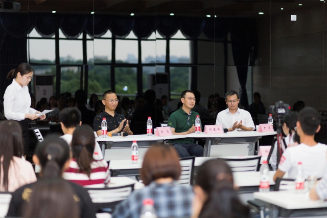 论坛最后一个环节是晚上的校友对话,三位优秀校友杜彪、尹军、郑春峰以访谈形式为老师和同学们进行了一场2个半小时的主题讨论。三位校友围绕“职业规划与青年发展”,着重分享了他们关于“专业学习与实践”、“考研与就业”的见解和主张。