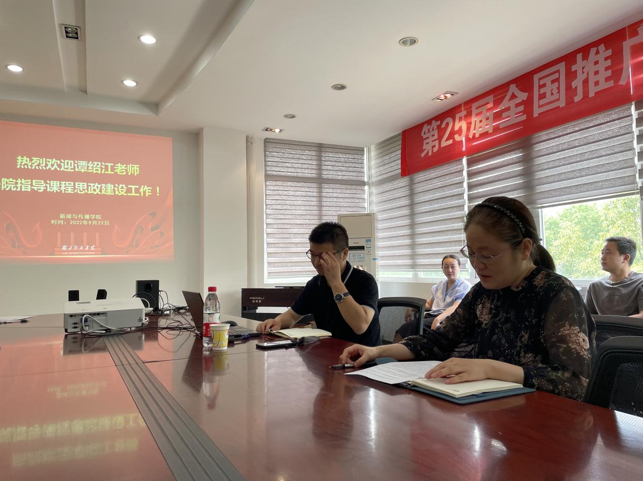 本网讯 为深入贯彻落实全国教育大会和全国高校思想政治工作会议精神以及我校课程思政实施方案的要求,2022年9月22日下午,yl23455永利邀请马克思主义学院谭绍江副教授前来指导课程思政建设工作,学院党委书记周志荣主持会议。