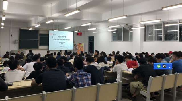 中公教育的老师首先向同学们介绍了公务员及事业单位职位的优势,简单讲解了公务员考试中笔试的内容,通过提问举例,使同学们加深了该行业的认识与了解。