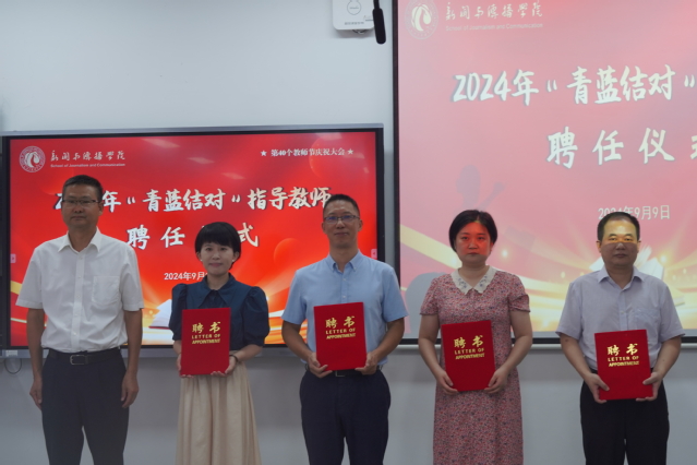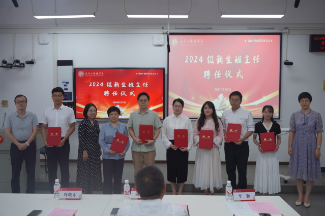 何校长及相关职能部门负责人分别为“青蓝结对”指导教师、2024级新生班主任颁发聘书。陈媛媛老师、王涵老师、谢伍瑛老师分别代表代表“青蓝结对”指导教师、新进青年教师、2024级新生班主任发言。