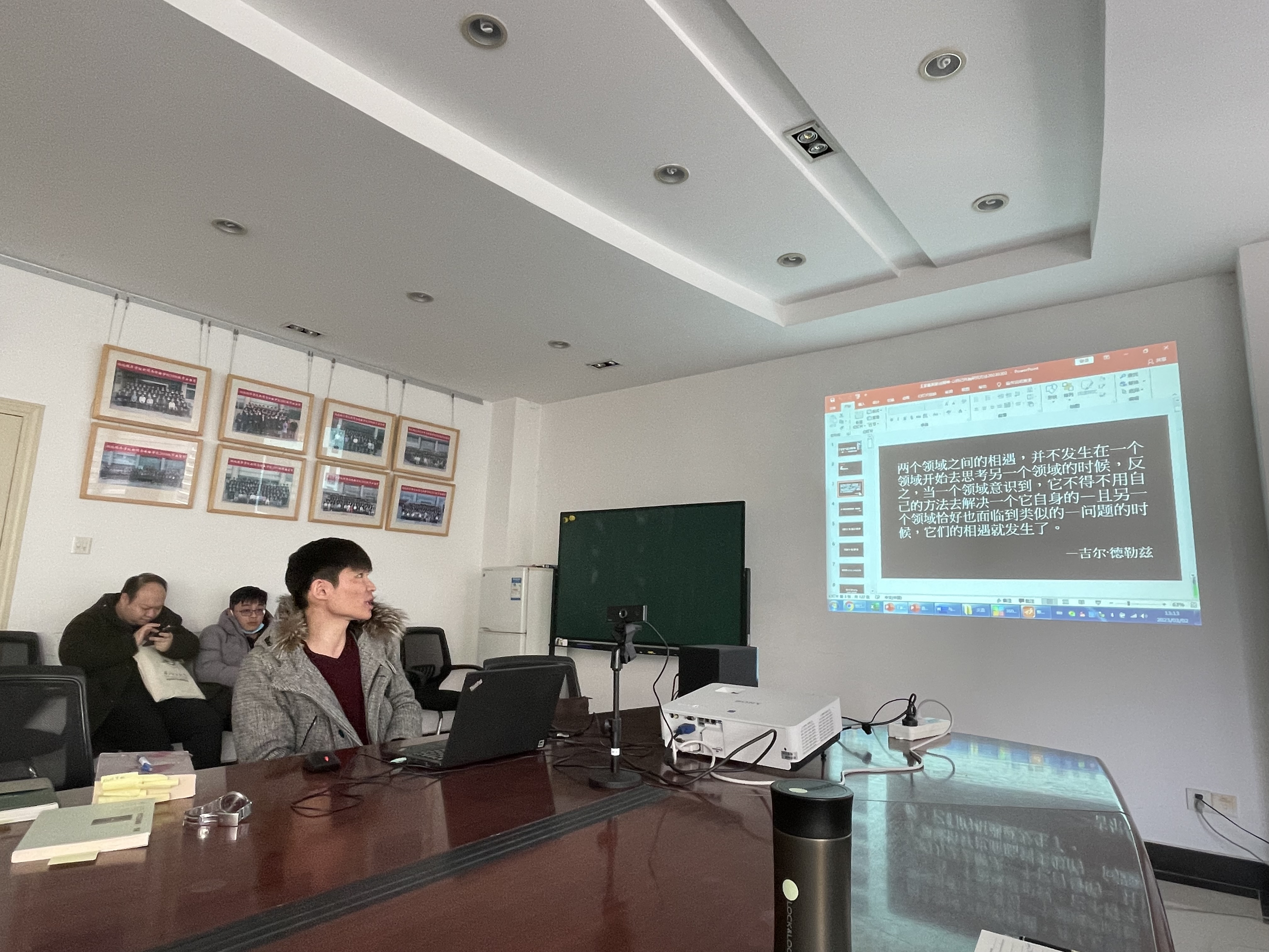 与会老师深受蔡文晟老师的感染,都肯定了学术研究的真正价值和意义,陈建华老师和王远坤老师先后就蔡文晟老师的学术功底给予了高度肯定,鼓励与会老师们要从自己的学科走出来,先在人文社科内部的学科交融,再进一步与理工科融合,形成复合型的学术体系。