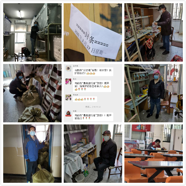 疫情猛如虎,却有人“偏向虎山行”。参与整理学生寝室的夏青老师在采访中说到,为自己能在这场抗击疫情的战斗中有所奉献而感到欣慰,“这是人生的一次重要经历,同时也是历练,这段记忆会伴随我们一生。希望大家保持积极的心态面对逆境,学会调整;面对纷杂的信息,学会分辨和思考。希望春暖花开之时跟同学们在樱花盛开的集思河畔相遇,你们依旧笑容灿烂。”