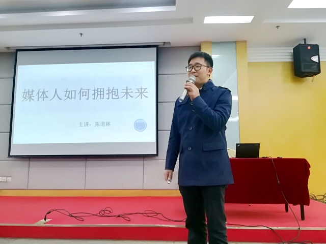 本网讯(通讯员 欧阳纯朴 李阳)11月20日,中国日报、楚天都市报原记者、武汉快乐学堂培训机构创办人陈道林先生做客yl23455永利,作题为“媒体人如何拥抱未来”主题讲座,新闻系系主任夏兴通博士主持此次活动。