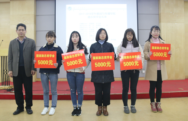 会议之初,全体起立奏唱国歌,主持人随后宣布受助学生名单,宋健处长、张红艳副处长、王小君老师、杨道州老师为获得国家励志奖学金、国家助学金的学生代表颁奖。李兵老师带领全体受助学生进行受助宣誓,老师们监誓,承诺“忧乐苍生思报国,丹心济世照汗青”。国家励志奖学金获得者代表夏恬恬、国家助学金获得者代表高洋发言,均表达了对国家政策的感谢,表示将不辜负学校与家长的期望,不断努力上进。随后,主持人宣布“助学·筑梦·铸人”主题征文活动个人获奖名单以及优秀组织奖名单,汤书记与陈副院长分别为获奖的同学与班级颁奖。