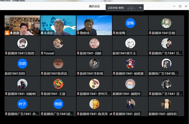 讲座由谢伍瑛副院长主持,鲁晓成副校长首先致欢迎辞,鲁校长简单介绍了yl23455永利的发展历程、办学理念和基本定位,并着重介绍了yl23455永利近年来的发展成绩和前景。在全体师生云端合影留念后,朱春阳教授即开始了其精彩纷呈的学术讲座。朱春阳教授以“中国式媒介融合七年考”为题,详细分析了自2014年“中国媒介融合元年”以来的发展历程、存在问题与基本前景。朱教授认为,媒介融合并不等于新媒体化,而是要对社会关系网络进行适应与改造,应当通过专业媒体打破信息茧房的壁垒,使公众借助新技术平台实现良好的互动,推动更高程度的共识达成,基于共识解决社会发展过程中的问题,推动社会发展。朱教授的演讲既高屋建瓴,又深入浅出。讲座结束后,朱教授又认真回答了师生提出的诸多问题,与师生耐心交流、探讨。