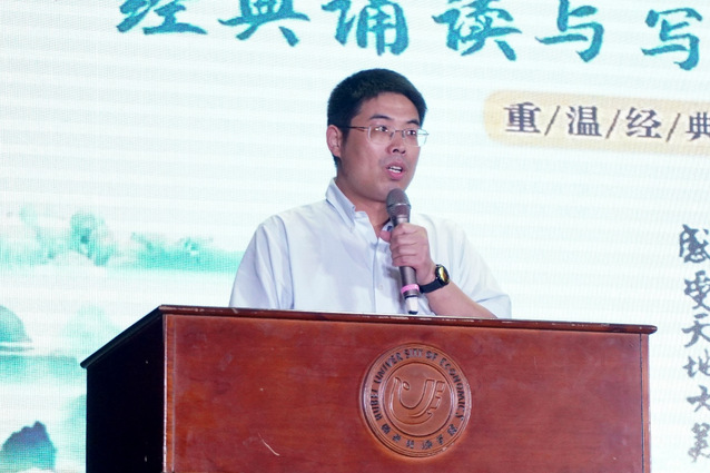 谢东升老师对各朗诵队伍的表现提出表扬,“他们的朗诵已经把我们内心的阅读情节给点亮了,用饱满的情感给我们演绎了一个个精彩的世界。”谢东升老师还指出参赛队伍“专、高、广”的三个特点,并祝愿“藏龙杯”越办越好!