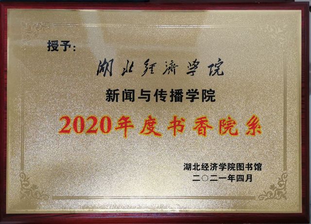 图为“2020年度书香院系”奖牌