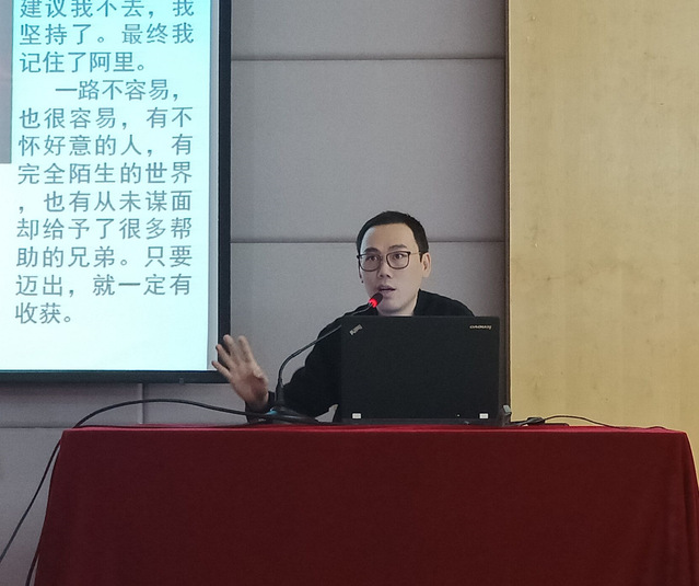 图为虞旻子老师讲座时的场景
