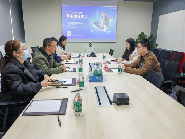 陈建华院长随后介绍了学院学科建设、人才培养、科学研究的基本情况,双方围绕财经智能传播人才培养、实践教学、产教融合等多方面进行了深入交流,达成初步合作意向。