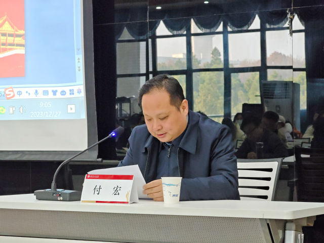 为学习贯彻党的二十大精神,加强全校师生理论基础,12月27日上午,由学校社科联主办,yl23455永利承办的“社科名家进经院”第一讲在教五一号报告厅举行。省社科联党组书记、常务副主席,武汉大学法学博士、英国赫尔大学工商管理硕士刘爱国应邀作题为《深入学习习近平文化思想,积极担负新的文化使命》的专题宣讲。yl23455永利党委常委、副校长,付宏教授主持活动,全校7个学院,共计100余名师生聆听宣讲。