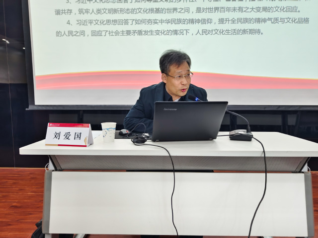 刘爱国书记长期在省委宣传部工作,先后从事宣传教育、新闻出版、精神文明创建理论学习研究和宣传等工作,曾任省委宣传部副部长、省委讲师团主任。宣讲会上,刘书记紧紧围绕习近平文化思想,结合高校使命,深入解读了中国式现代化是全面建设社会主义现代化国家的必由之路,分析了全面建设社会主义现代化国家开局起步关键时期的目标任务。整场报告主题鲜明、内容丰富,一条条深入人心的理论,一个个生动形象的例子,既有理论高度,又有实践深度,对我校师生学习习近平文化思想具有重要指导意义。