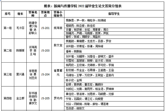 每个答辩小组配备一名答辩秘书,具体安排见附件。