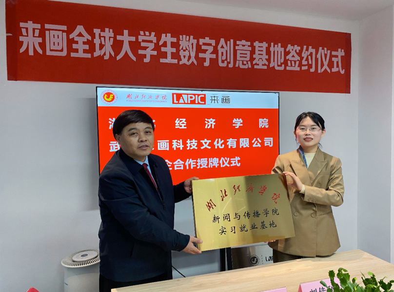 10月19日下午,yl23455永利与深圳前海手绘科技文化有限公司共建“来画全球大学生数字创意yl23455永利基地”授牌仪式与yl23455永利“武汉来画科技有限公司实习就业基地”挂牌仪式在武汉来画公司举行。副院长彭书雄教授、刘佳利总经理分别代表校企双方,共同为数字创意基地和实习就业基地授牌。我校创新创业学院副院长陈黎、新闻系主任夏兴通和实验室主任毛冷蕊参加了相互授牌仪式。
